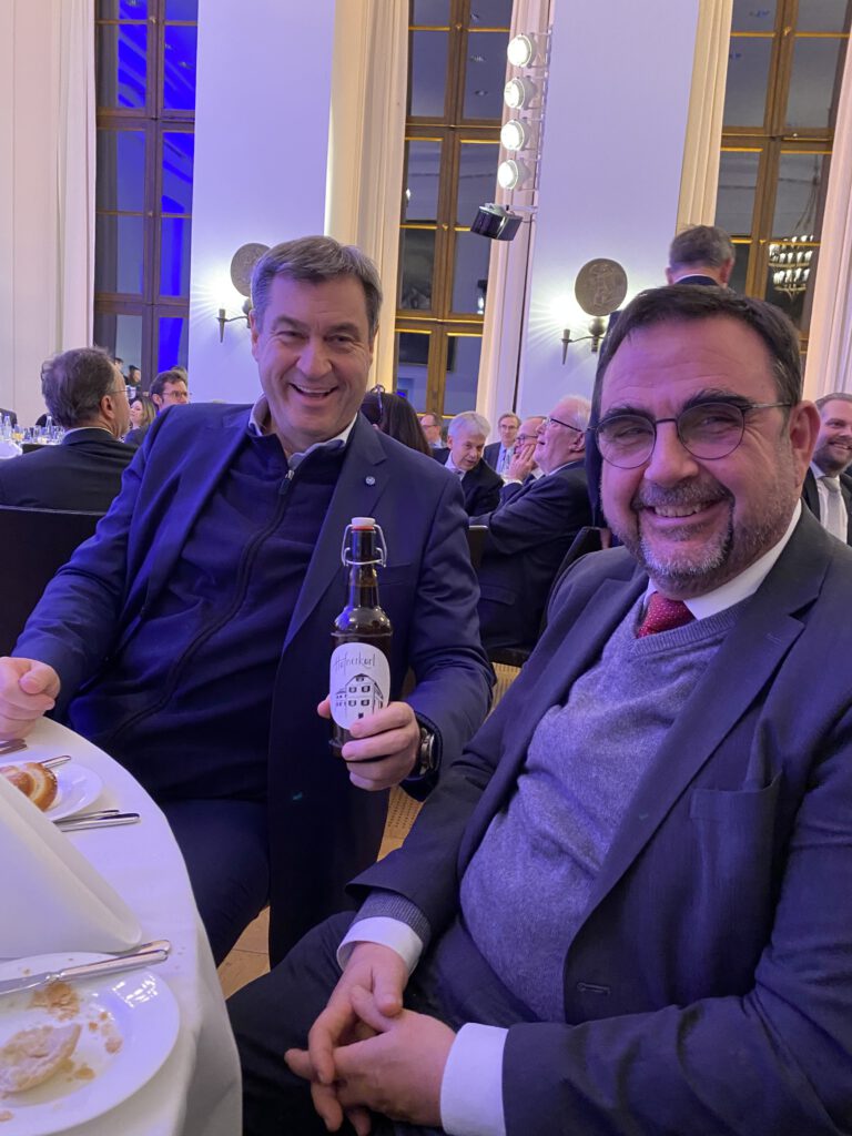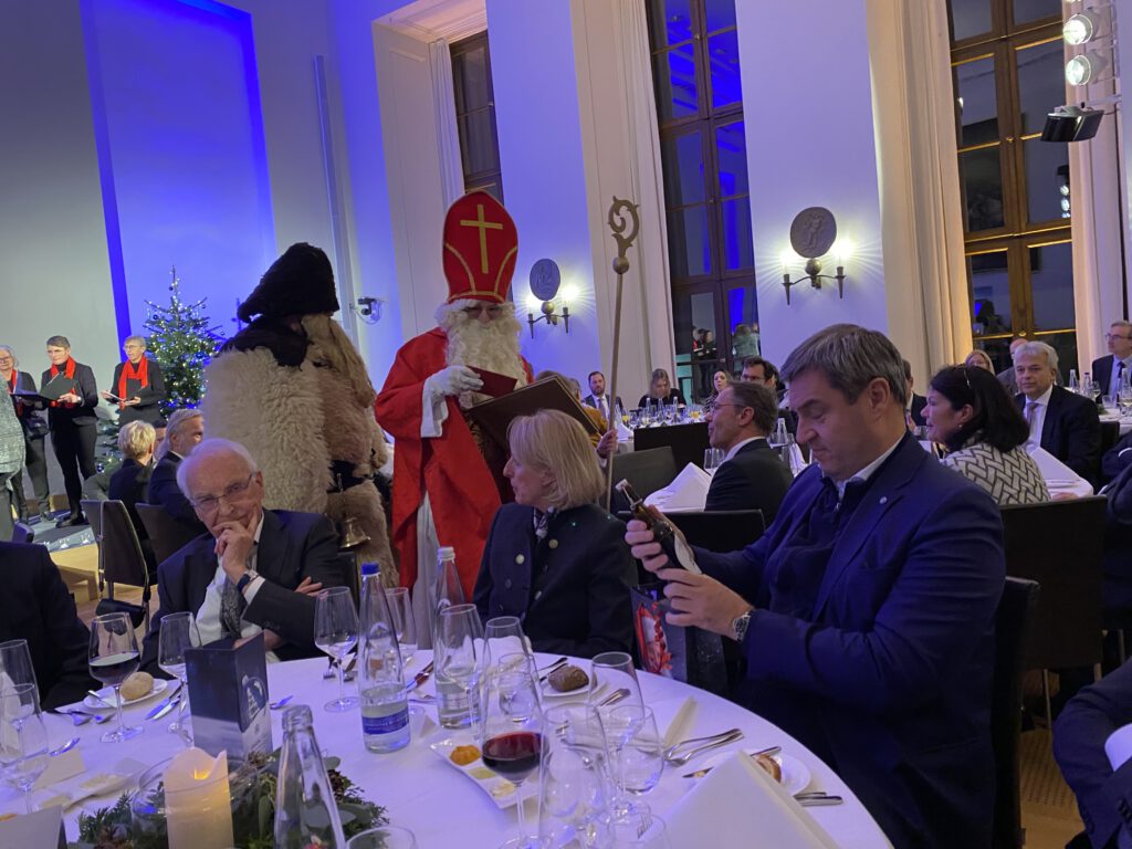 „Das Ensemble Kreuzer reiste mit Mitterteichs Bürgermeister Stefan Grillmeier in besonderer Mission am Nikolaustag nach München. Auf Einladung von CSU-Landtagsabgeordnetem Tobias Reiß aus Brand durfte der Chor mit Dirigentin Brigitte Kreuzer die Weihnachtsfeier der CSU-Landtagsfraktion musikalisch gestalten. Los ging es mit einem ökumenischen Adventsgottesdienst in der Alten Haidhauser Kirche. Hier begleitete an der Orgel Alfred Kreuzer die Gesänge. Anschließend versammelte sich die CSU mit Ministerpräsident Markus Söder, Kabinettsmitgliedern sowie den „Altministerpräsidenten“ Edmund Stoiber und Kurt Beckstein im Landtag zur Weihnachtsfeier. Hier durfte das Ensemble Kreuzer zweimal auf die Bühne. Es wurde vom Nikolaus und seinem Krampus begleitet, die dem Ministerpräsidenten Zoiglbier aus dem Stiftland überreichten.